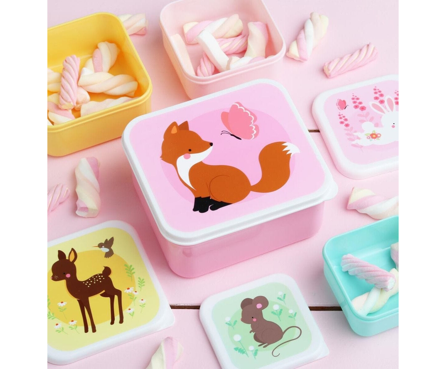 Αποθηκεύστε το αγαπημένο του σνακ ή φαγητό σε αυτό το όμορφο σετ με θέμα τα ζώα του δάσους! Φρούτα, λαχανικά, μπισκότα, γλυκά, σάντουιτς μπορούν εύκολα να χωρέσουν μέσα στα δοχεία.