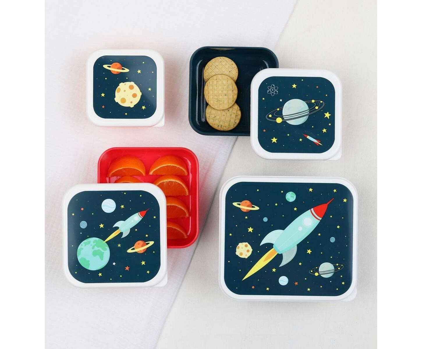 A little lovely company Σετ 4 δοχεία φαγητού Lunch & Snack Box - Space