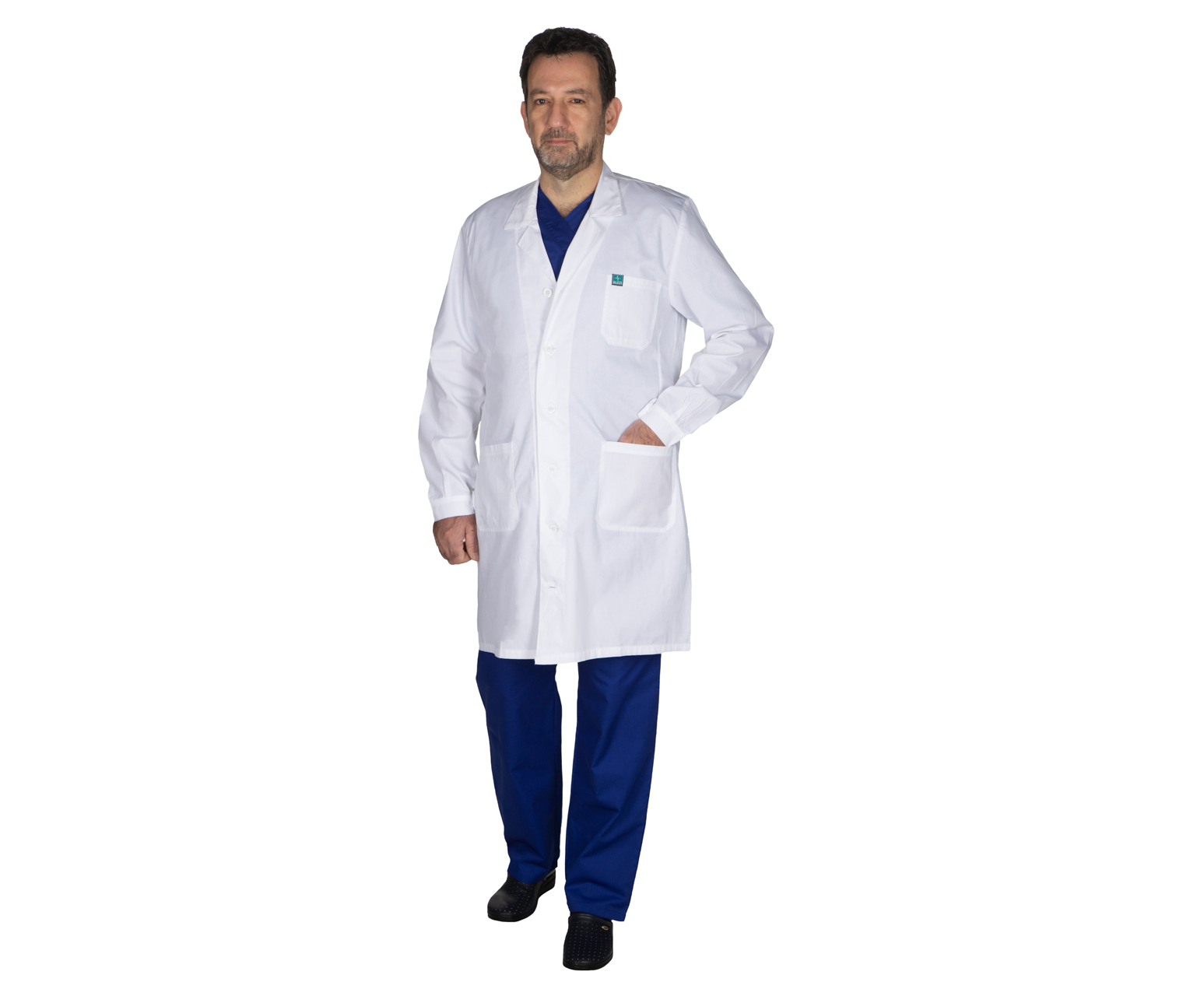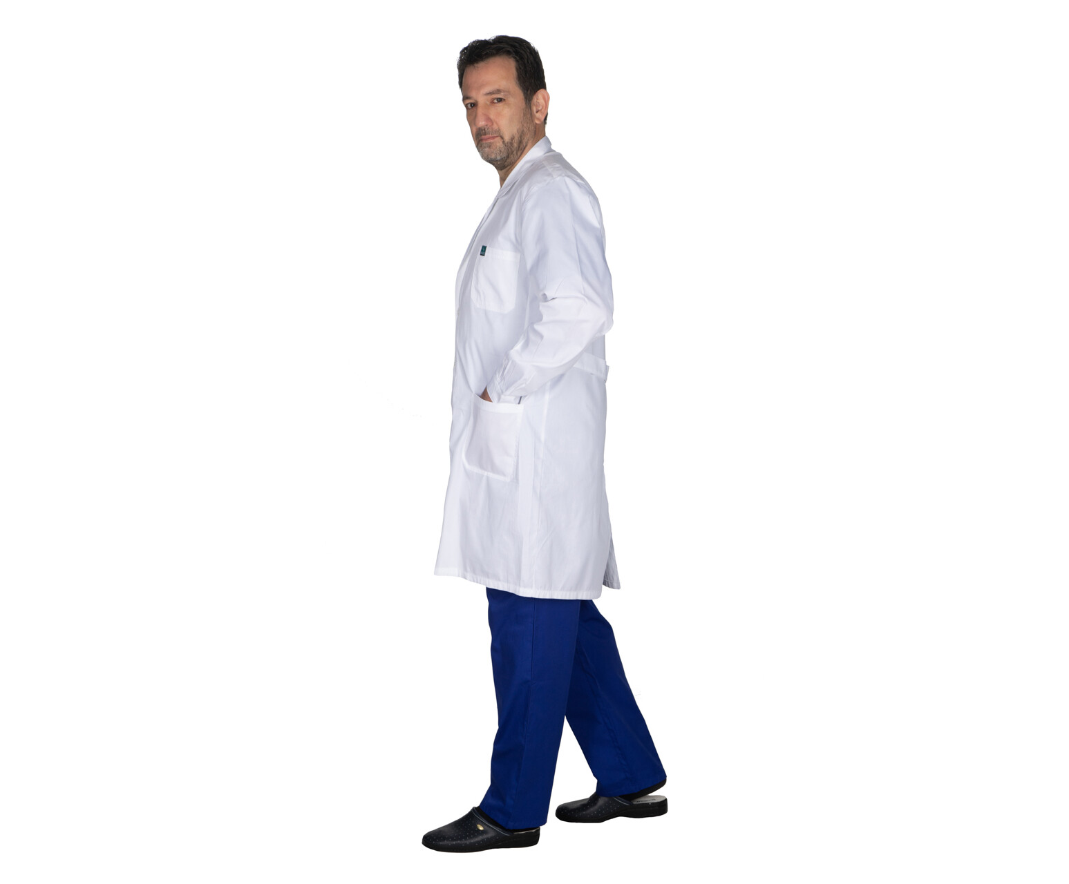 Η ρόμπα μας συνδυάζει την άνεση και την ευκολία κίνησης με τον επαγγελματικό σας στυλ. Η σύνθεση της είναι από 65%πολυεστέρα-35% βαμβάκι προσφέρει μια ιδανική ισορροπία μεταξύ ανθεκτικότητας και αναπνοής, εξασφαλίζοντας άνετη αίσθηση όλη μέρα, είναι ελαφριά και ευέλικτη, επιτρέποντάς σας να κινείστε ελεύθερα χωρίς περιορισμούς. Το κλασσικό σχέδιο με πέτο γιακά προσθέτει έναν επαγγελματικό χαρακτήρα, ενώ οι δύο τσέπες στο πλάι και η τσέπη στο στήθος με θήκη για στυλό ή φακό παρέχουν βολικό χώρο αποθήκευσης για τα απαραίτητα εργαλεία σας. Η πίσω ζώνη προσφέρει κομψή εφαρμογή και στυλ. Είναι ιδανική για γιατρούς, νοσηλευτές, οδοντίατρους και κάθε επαγγελματία στον τομέα της υγείας.