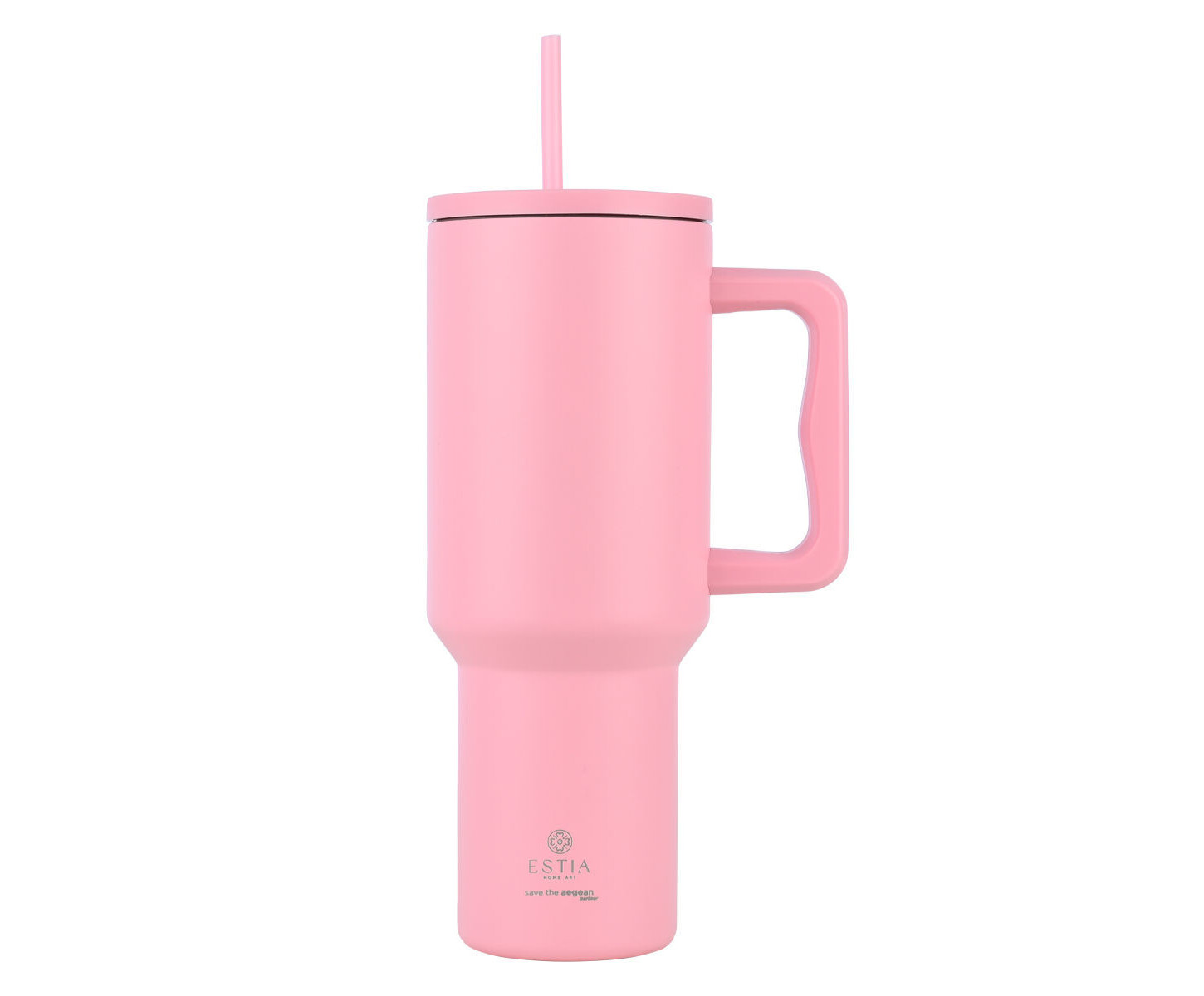 Estia Straw Tumbler XL Handled Tumbler Θερμός Ανοξείδωτο 1200ml Blossom Rose 01-32210