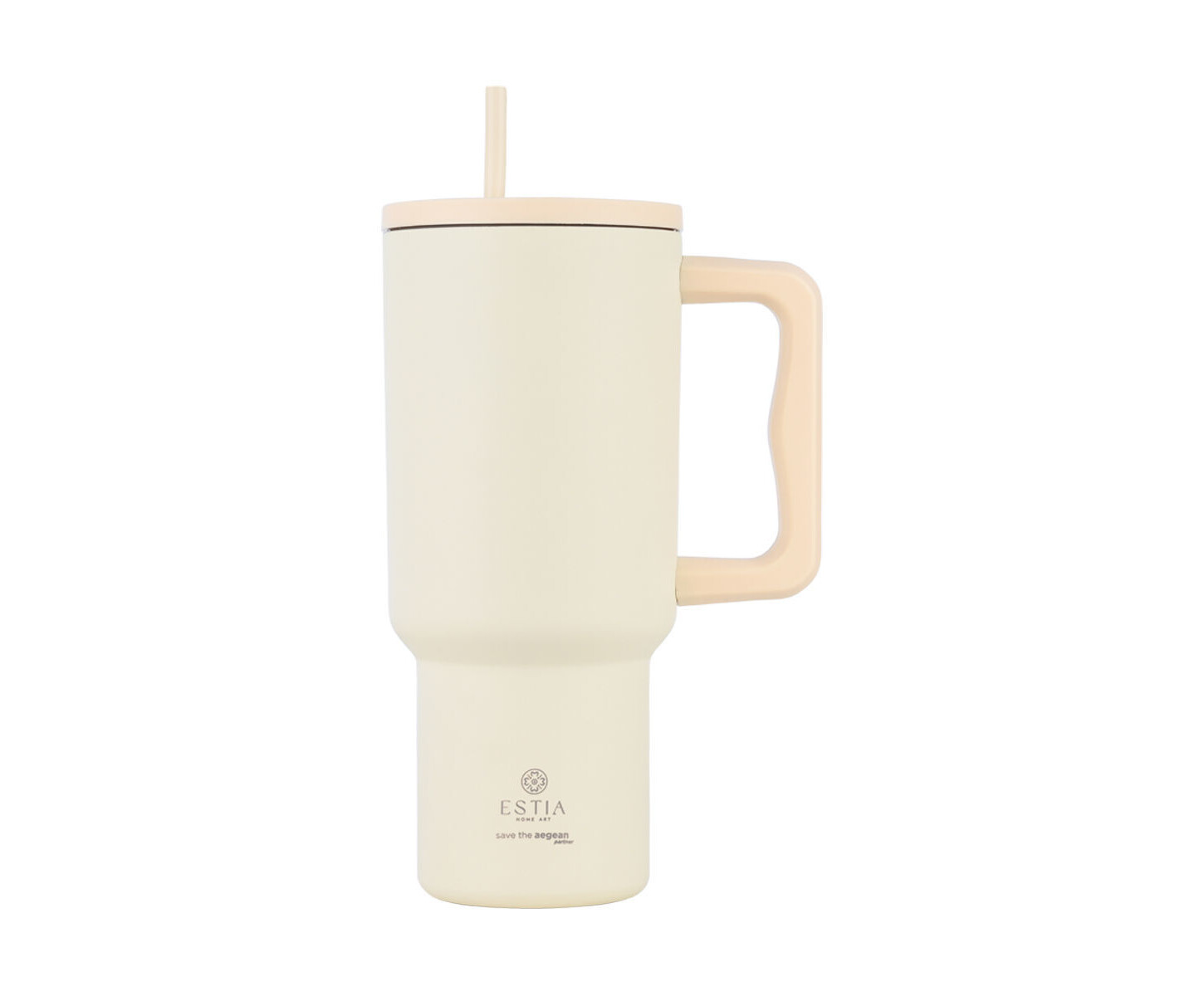 Estia Θερμός Straw Tumbler XL SAVE THE AEGEAN 900ml Lily White 01-32128