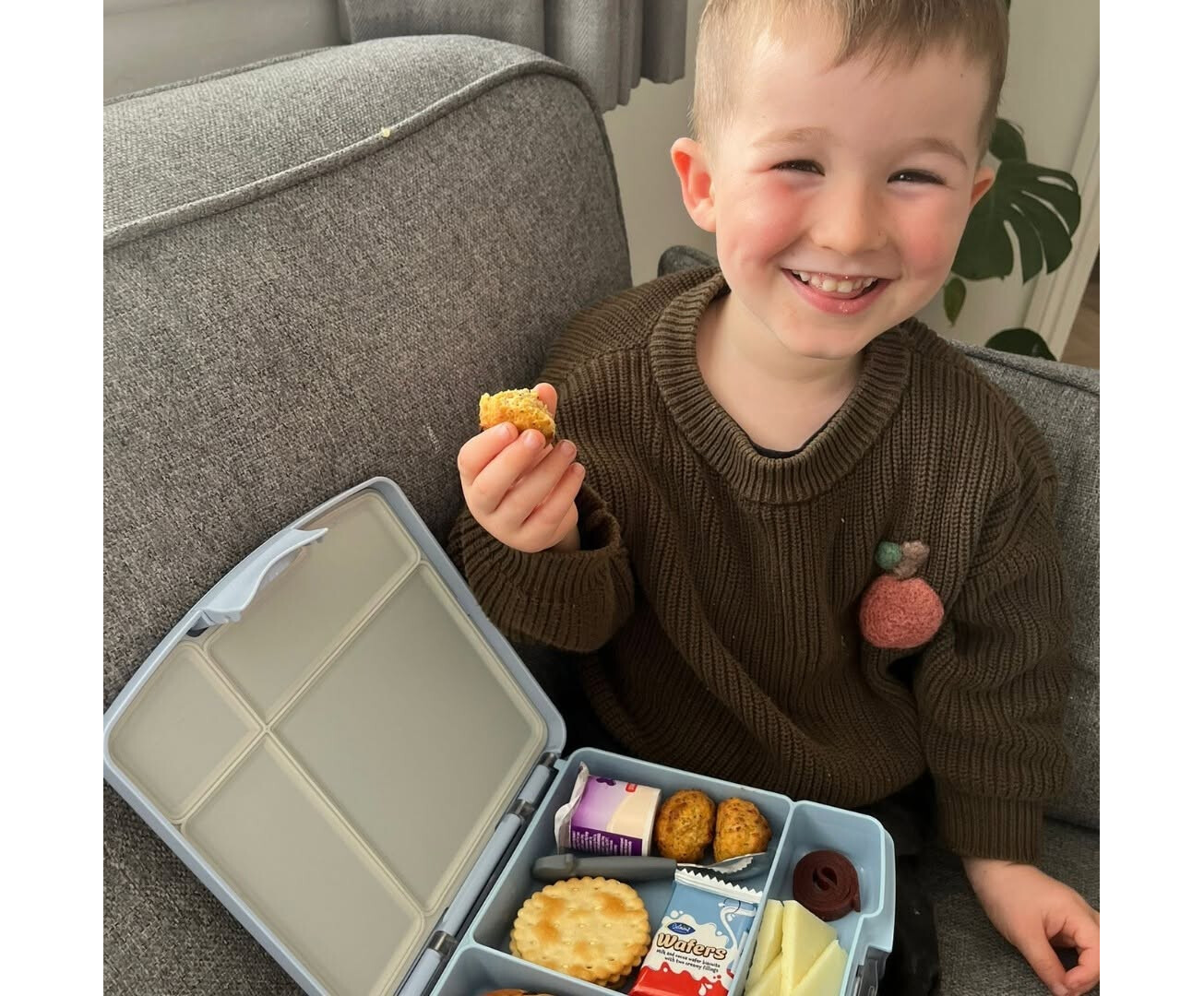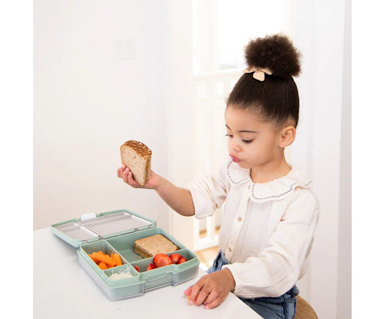 Διαθέτει τέσσερα χωρίσματα για να μπορείτε να αποθηκεύσετε ένα πλήρες γεύμα και λαβή για να το μεταφέρει εύκολα ακόμα και το παιδί!